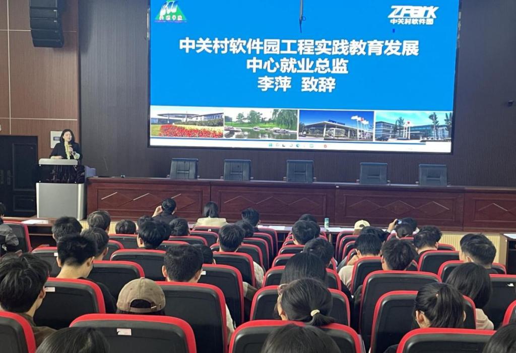 随后,中关村软件园工程实践教育发展中心就业总监李萍发表致辞。作为深耕行业人才培养与就业指导领域的专家,李萍老师结合当前计算机与大数据行业的发展趋势、企业用人需求标准,为学生提供了极具针对性的实习指导建议。她鼓励学生在实习中主动对接实际业务需求,积极积累项目经验,同时分享了职场沟通、问题解决等实用技巧,让学生对企业实习的实际场景与成长路径有了更直观的认知。