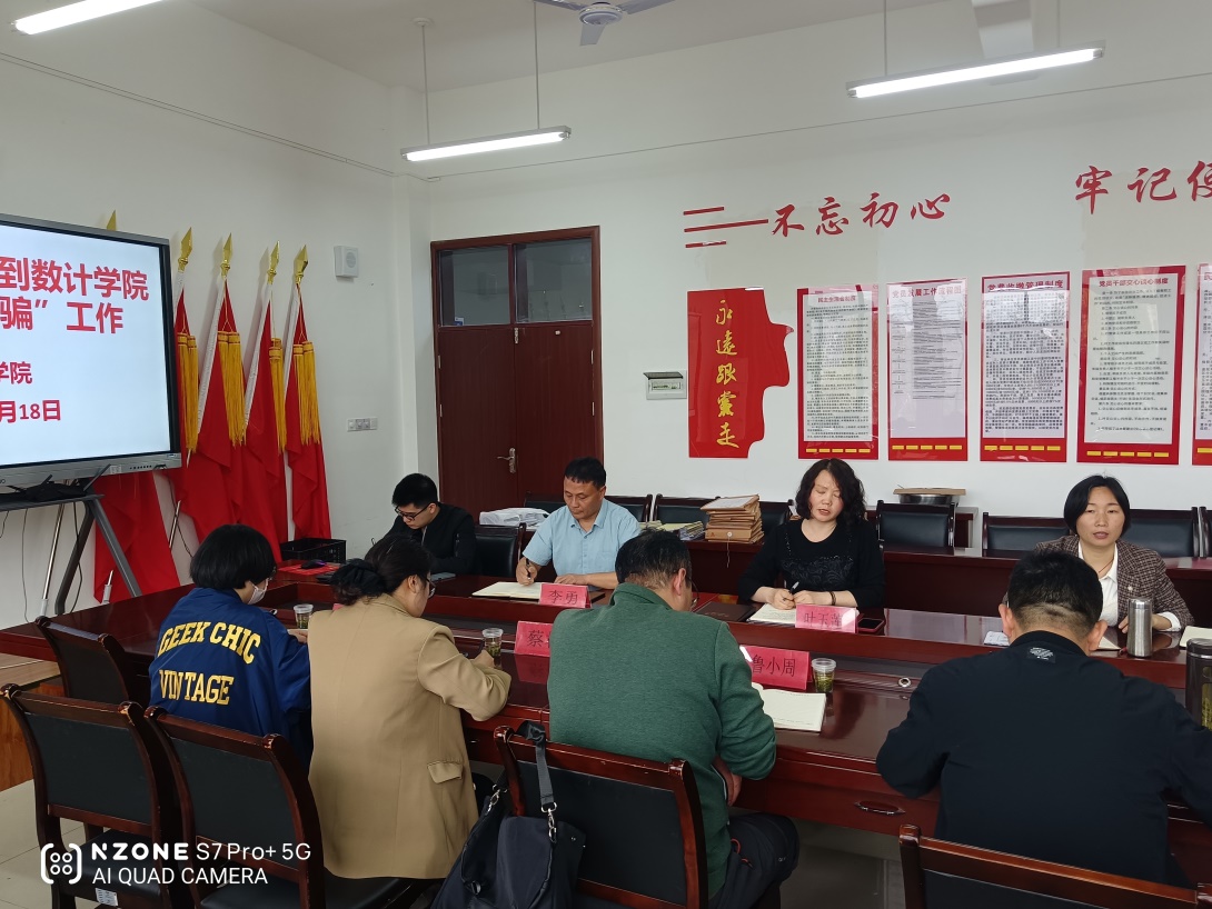 数理学院党委书记叶玉莲对数计学院近期防诈骗工作开展情况进行总体汇报,数理学院李勇副书记和金文琼科长汇报近期防诈骗工作开展的具体情况。