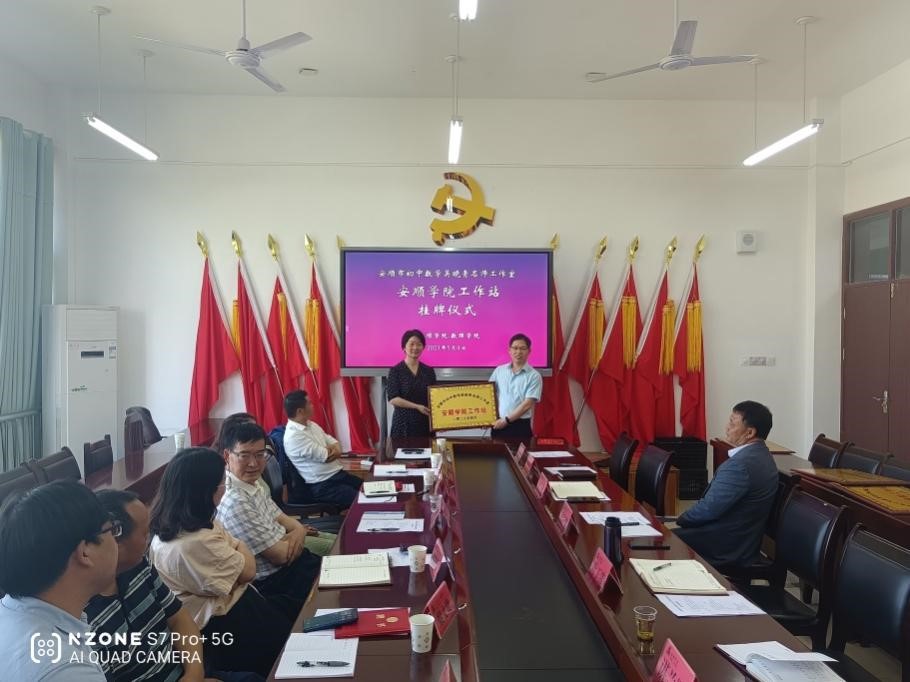 2023年5月4日15:00,名师工作室安顺学院工作站挂牌仪式及师范类专业外聘名师座谈会在我院2-17会议室举行。安顺市教科所领导、贵州省及安顺市中小学数学名师、安顺学院示范实习实践基地学校领导、数理学院领导及数学专业教师参加本次会议。