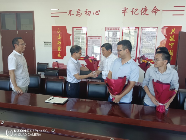 陈云坤校长代表学校党委向数计学院钱淑渠博士、杨迎球博士、李辉博士、王辉博士及黄守德博士五位高层次人才献鲜花和慰问信,表达了学校党委对我院博士们取得的成绩的谢意。通过亲切的交谈,陈校长对我院博士们的生活、学习和工作进行详细的了解,对我院博士们提出的疑问给出了切实可行的解决办法和建议,勉励博士们要充分发挥各自的专业优势和科研优势,在学科专业建设和科研方面起到带头人的作用。