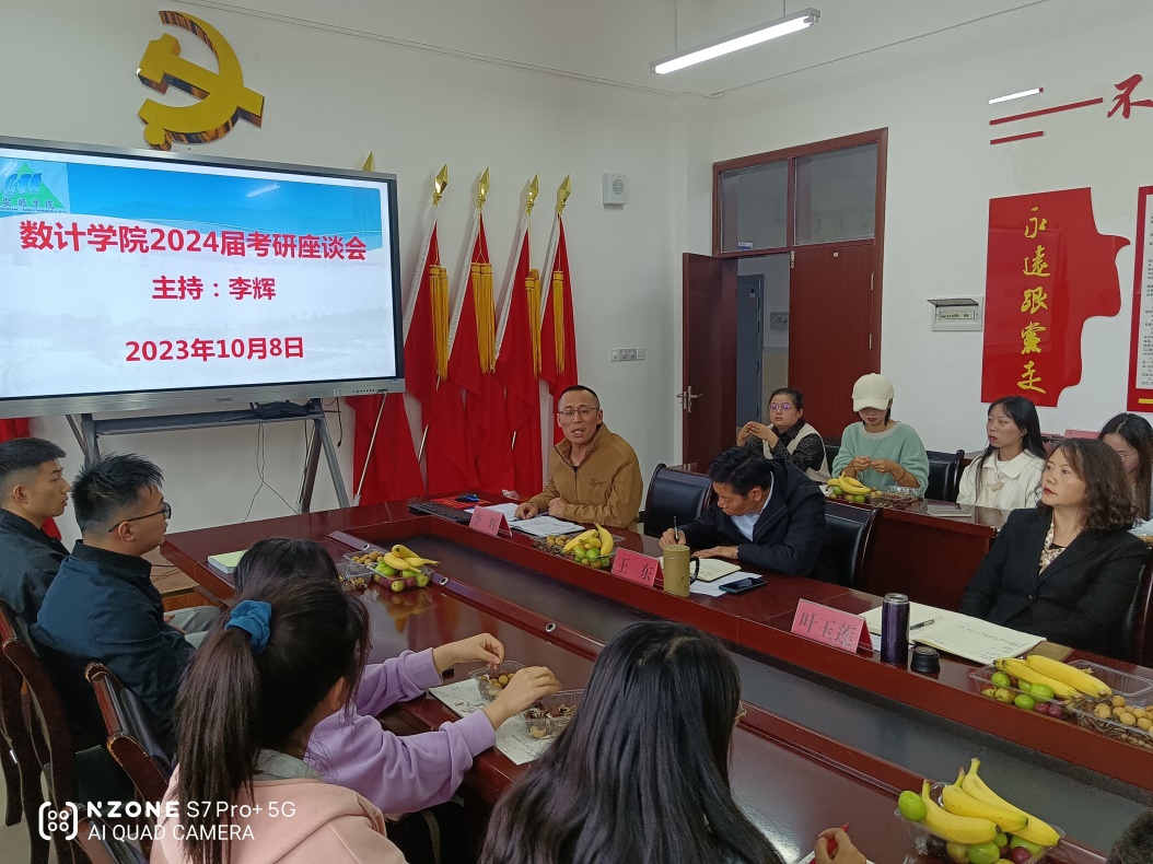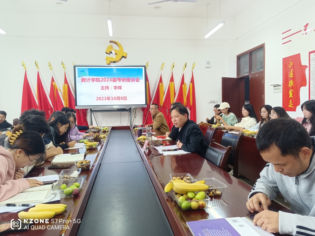 2023年10月8日15:00,数理学院在顺理楼2-17会议室组织召开2024届考研座谈会。学院叶玉莲书记、钱淑渠院长、教务科王东科长、2020级班主任黄宝勤、林妤老师,以及2020级预考研学生参加本次座谈会,本次座谈会由李辉博士主持。
