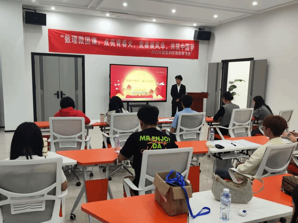 为深入学习贯彻习近平新时代中国特色社会主义思想,引领青年学生厚植爱党爱国爱团情怀,4月 18 日下午,“数理微团课,点亮青春火,竞赛展风华,共筑中国梦”微团课比赛在“一站式”学生社区活动服务中心举行。来自各年级的 10 支参赛团队围绕 “理论学习”“红色传承”“时代使命” 三大主题展开激烈角逐,用青春之声传递信仰力量。