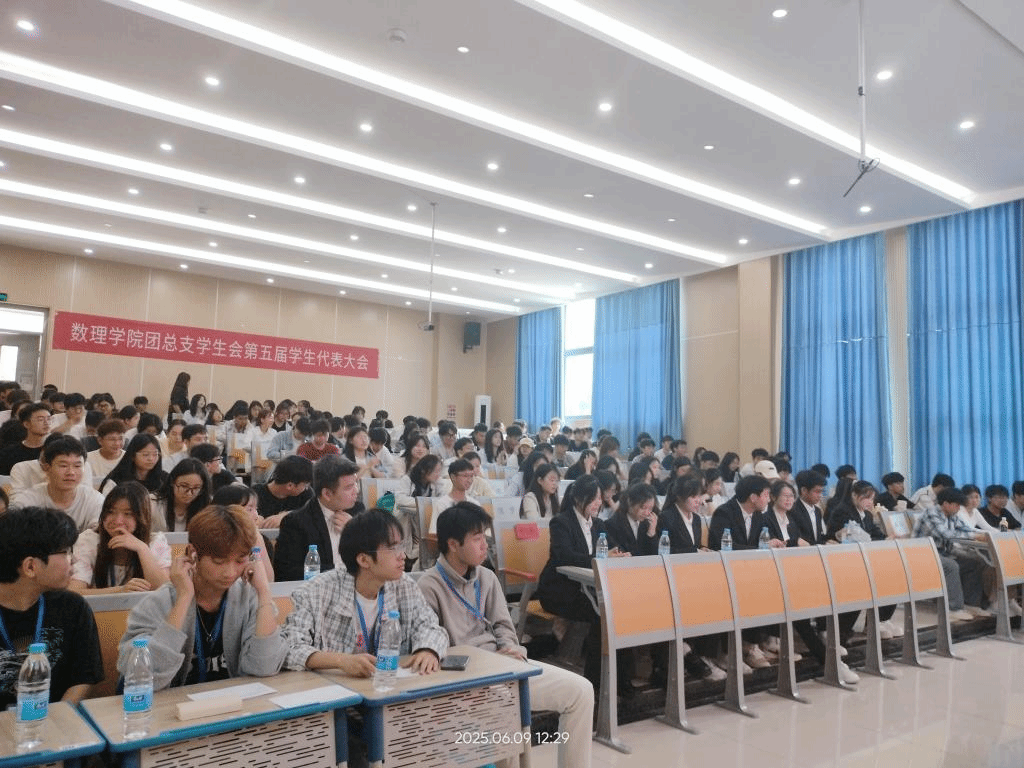 2025年6月9日,我院第五届学生代表大会在顺理楼1-28教室隆重召开。出席本次大会的人员有数理学院专职副书记王东、学生科科长吴江燕、专职辅导员陈俊威老师,以及学生会全体成员及各班学生代表,会议由团总支副书记林妤主持。
