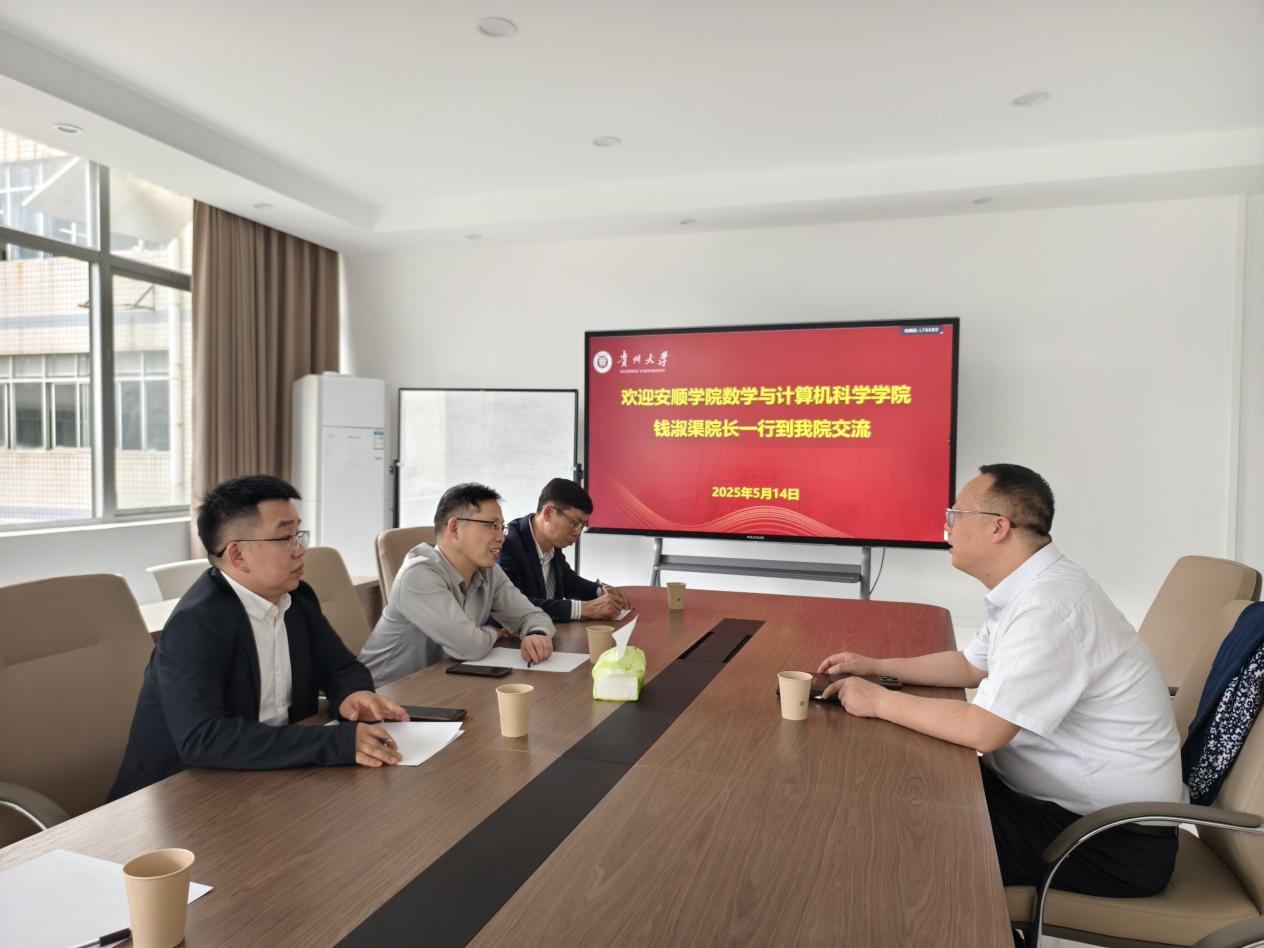 贵州大学数学与统计学院院长贾文生对安顺学院一行的到来表示欢迎,并分享了贵州大学在学科建设、科研平台搭建及人才梯队培养方面的经验。双方达成初步合作意向,未来将在师资共享、联合培养研究生、科研项目合作等领域深化协同,共同探索地方高校特色化发展路径。