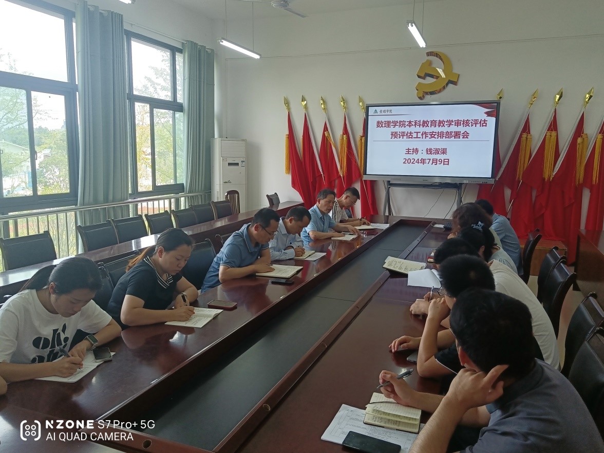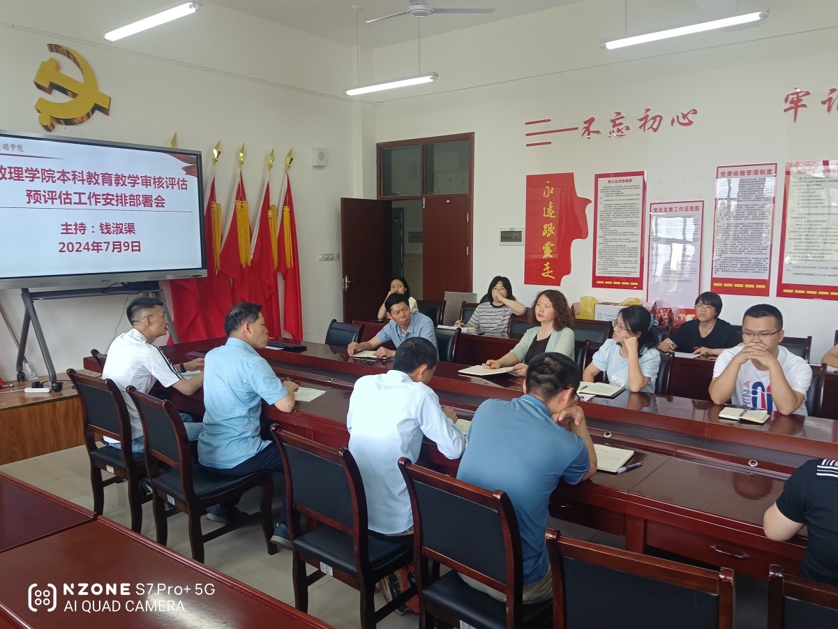 为了更好地做好预评估工作的准备工作,数理学院于2024年7月9日15:00,在顺理楼-2-17会议室召开本科教育教学审核评估预评估工作安排部署会。本次会议由钱淑渠院长主持,数理学院领导班子成员、各科室行政坐班人员、各专业负责人及各专业教研室主任参加本次会议。