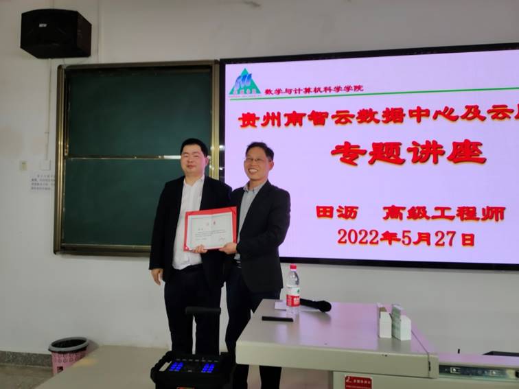 2022年5月27日受我院邀请,贵州南自云数据中心田沥副总经理受邀为我院2019级、2021级计算机、大数据专业师生作“关于贵州南智云数据中心及云网平台”专题讲座。