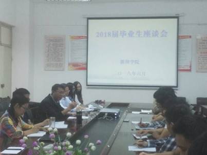 2018年6月28日下午,数理学院召开2017-2018第二学期毕业生代表座谈会。参加会议的有学院院长庄中文、党总支书记贺雷、副院长杨迎球,教务科长钱淑渠,学生科科长金文琼,以及毕业班学生代表,会议由钱淑渠主持。