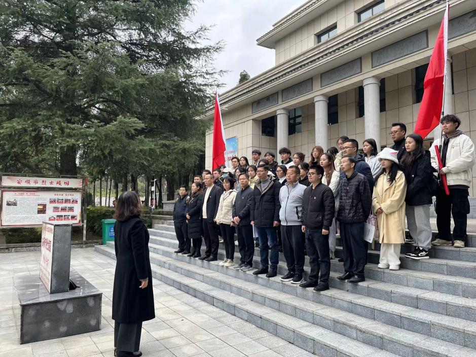 参加活动的全体师生党员首先在庄严肃穆的烈士纪念碑前进行默哀,表达对烈士的崇高敬意和深切悼念之情。默哀活动完成后,谌兰樱同志带领全体党员师生重温入党誓词。随后,数计学院师生一同参观了安顺市党史陈列馆,重温先辈们的英勇事迹和革命精神。最后学院党委书记叶玉莲勉励师生要牢记党的光荣历史,继承革命先辈的遗志,树牢理想信念,珍惜当下,奋发有为,为民族复兴大业做出自己应有贡献。