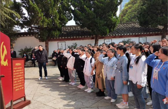 参观王若飞故居后,在庄严的党旗下,党委委员王东同志带领全体党员重温入党誓词。宣誓结束党员们纷纷表示,宣誓就是庄严承诺,这次学习再次受到深刻的党性和爱国主义教育,并表示在以后的工作学习中要“不忘初心,牢记使命”,争做一名优秀的共产党员。