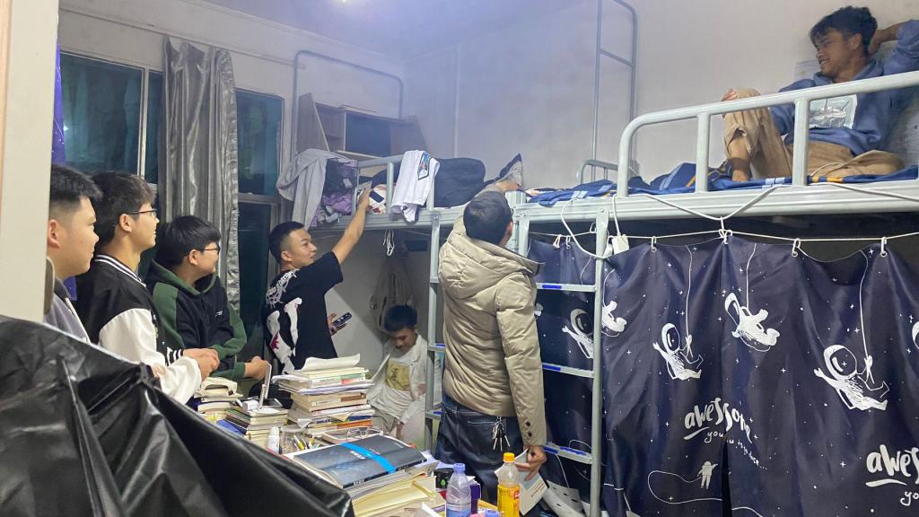 临近期末之际,为了解学生的学习和生活情况,督促学生做好期末学习和宿舍安全防范,我院专职副书记王东老师于2023年12月11日晚上带领学生干部走访学生宿舍。
