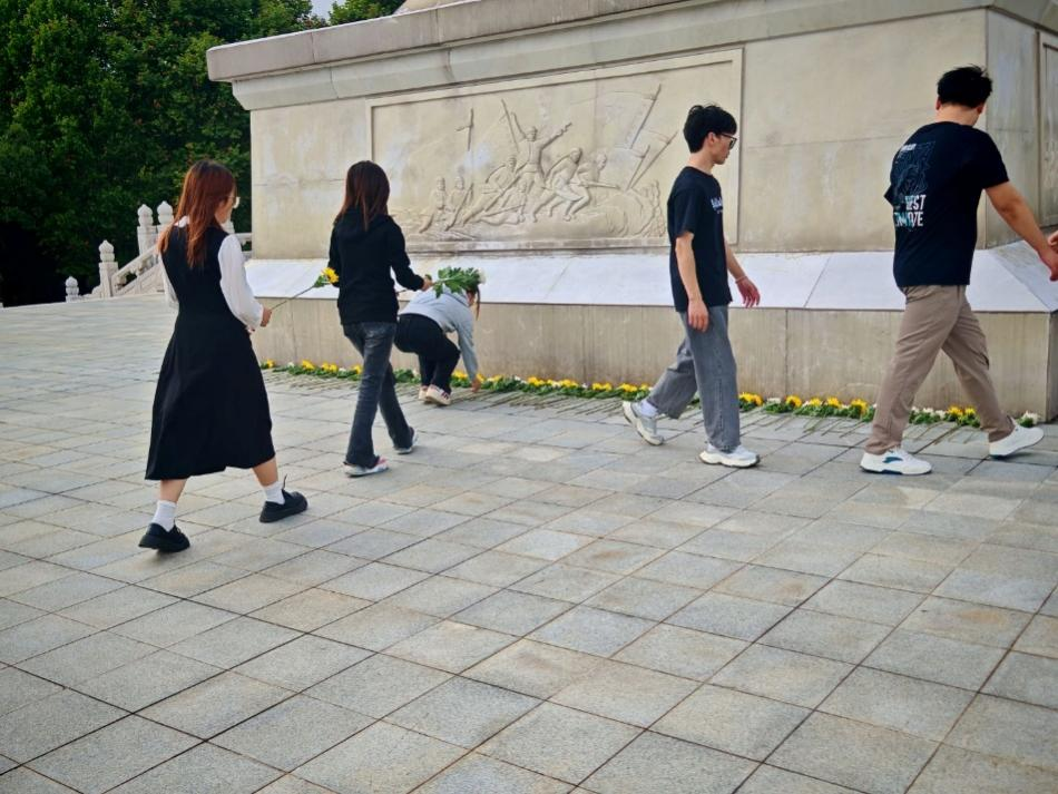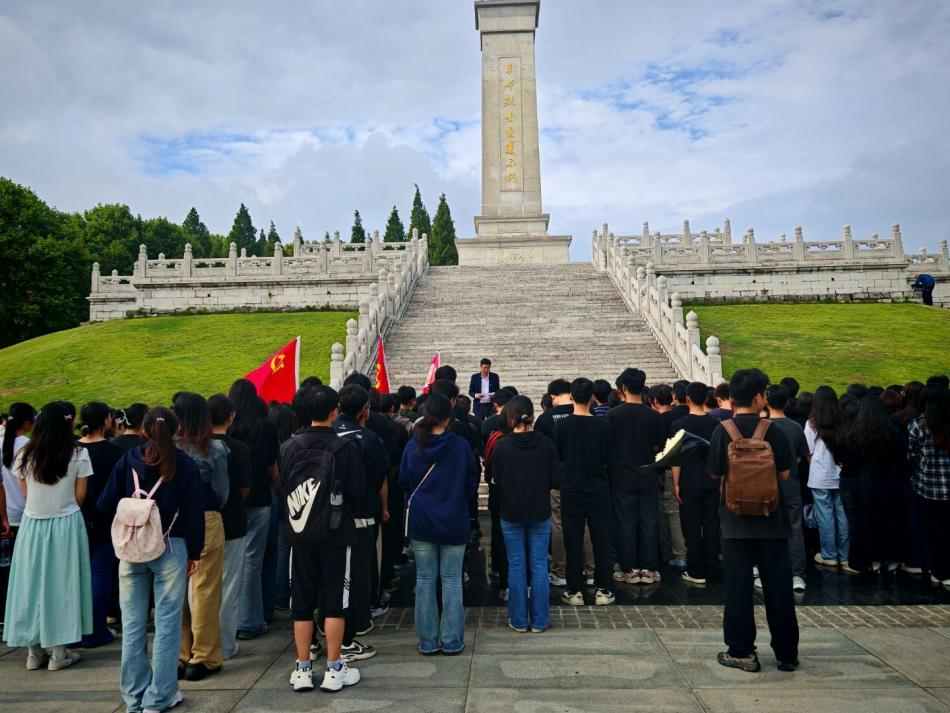 秋高气爽,松柏凝翠。在重阳节来临之际,为深切缅怀革命先烈的英勇事迹,厚植爱国主义情怀,2025年9月23日下午,我院学生党支部、团总支及学生会组织师生代表160余人,由党委副书记王东老师、团总支副书记林妤老师和专职辅导员黄娜老师带队,前往烈士陵园开展献花活动,以秋日的庄重之姿,向英烈致敬。