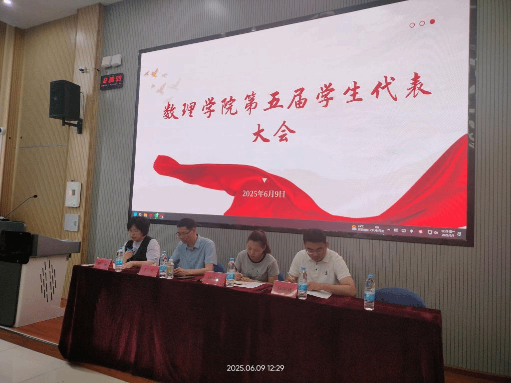 2025年6月9日,我院第五届学生代表大会在顺理楼1-28教室隆重召开。出席本次大会的人员有数理学院专职副书记王东、学生科科长吴江燕、专职辅导员陈俊威老师,以及学生会全体成员及各班学生代表,会议由团总支副书记林妤主持。