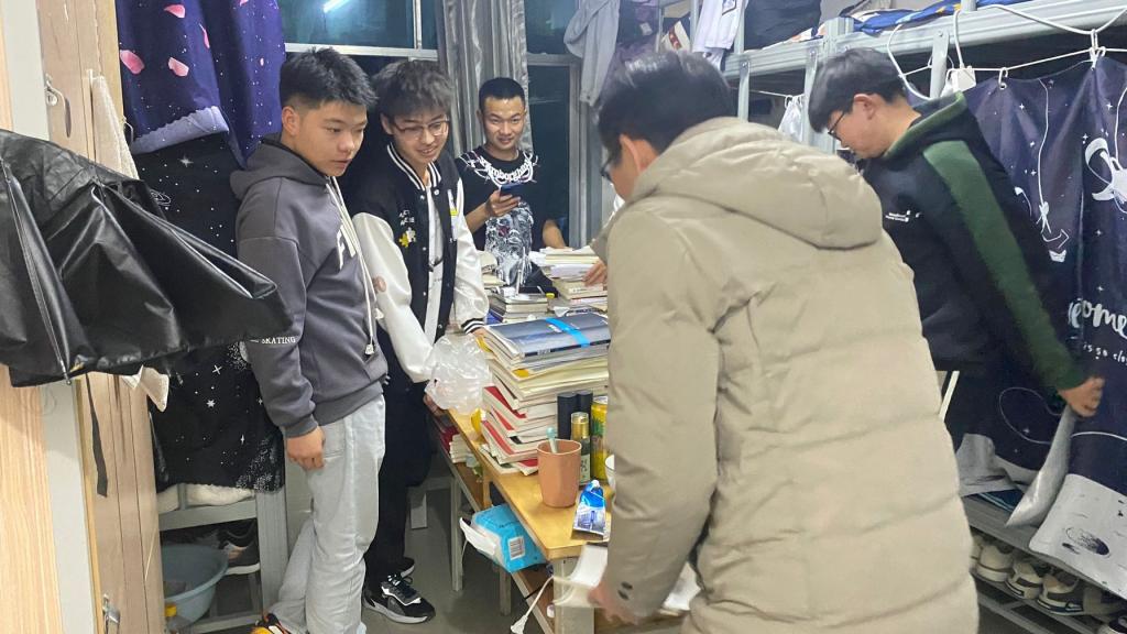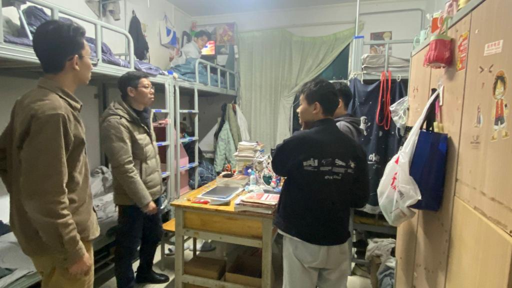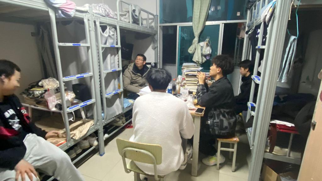 临近期末之际,为了解学生的学习和生活情况,督促学生做好期末学习和宿舍安全防范,我院专职副书记王东老师于2023年12月11日晚上带领学生干部走访学生宿舍。