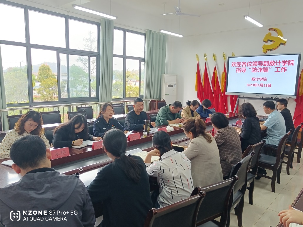 2023年4月18日上午10:00,安顺学院保卫处、学生处及西航派出所到数理学院指导“防诈骗”工作。参加本次指导工作的有安顺学院保卫处陈欣副处长、张艳科长、宋艳老师及学生处鲁小周处长、蔡林副处长、韦芳科长以及西航派出所贺蕾警官。