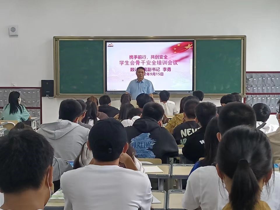 为进一步夯实我院学生安全工作,帮助学生树立正确的安全观,创建安全的学习环境。9月15日,我院学生会在顺理楼121教室召开安全教育主题培训会议,数计学院副书记李勇、团总支副书记林妤及学生会全体成员参加本次培训会,本次培训会由林妤主持。