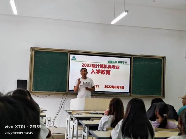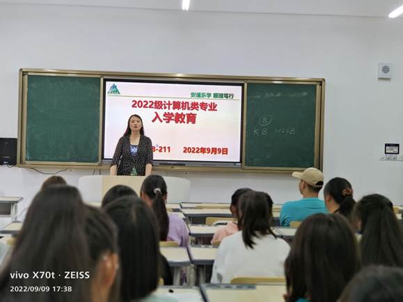 9月9日下午,数计学院为2022级计算机类专业四个新生班分别开展入学教育。参加入学教育的有学院党委书记叶玉莲、公共计算机主任谌兰樱、副院长钱淑渠、党委副书记李勇。会议由各班班主任主持。
