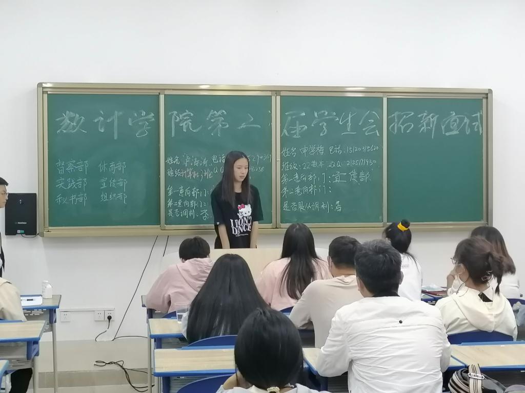 2022年9月5日18时,数学与计算机科学学院(以下简称“数计学院”)第二届学生会招新面试于顺理楼105教室正式开展,参加本次招新面试的有数计学院团总支副书记林妤老师、学生会主席及各部门部长。
