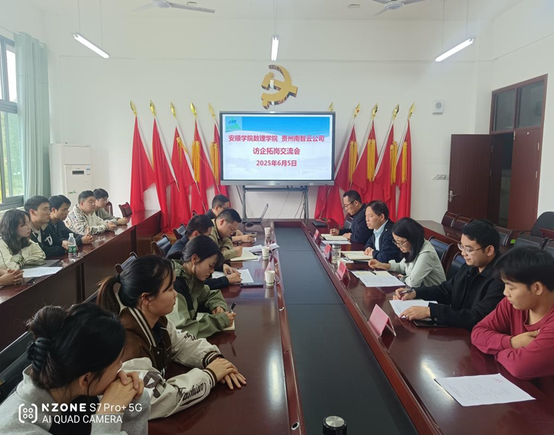 2024年6月5日下午,我院举办了贵州南智云谷数字产业发展有限公司专场招聘及拓岗交流会,会议由数理学院办公室主任李辉主持,院长钱淑渠、公共计算机教学部主任谌兰樱、就业专干陈俊威、部分学生代表参加了会议。