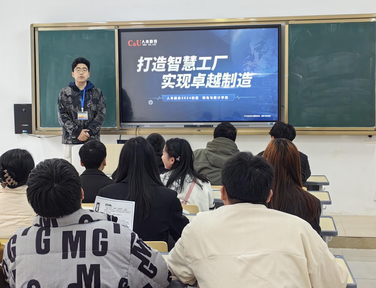 招聘会由物电学院陈波老师主持,人本股份有限公司人力资源专员刘煜晨向全体同学作宣讲,主要围绕了公司简介、员工发展、招聘岗位、福利待遇等方面,该公司为我院提供了包括计算机类等在内的岗位,岗位需求人数超过25个。后期,我院将继续扩大宣传,让未能到场的毕业生也了解到该公司的招聘信息,以促进毕业生就业。
