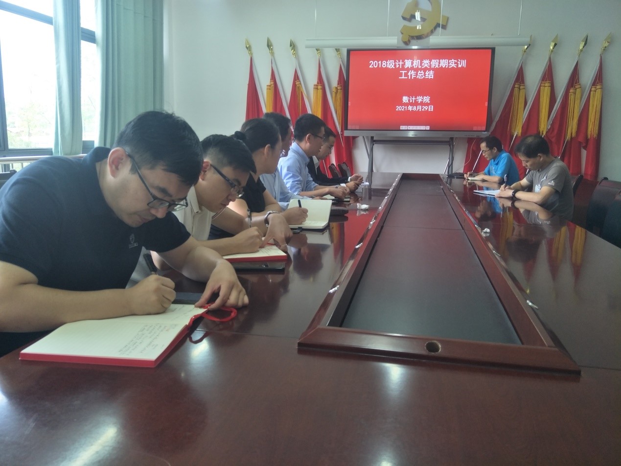 8月29日上午,数计学院于顺理楼207会议室举行2018级计算机大类暑期实训工作总结会,专职副书记钱淑渠、教务科副科长黄宝勤及中关村实训教师和教学专员共计7人参与了会议。