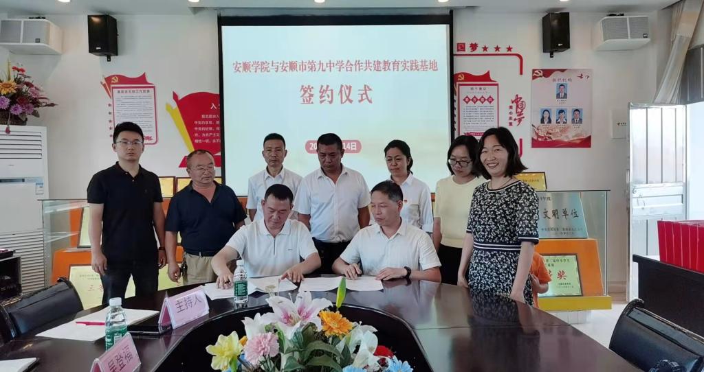 为保持校外实习实践基地长期稳定发展,发挥实习基地应有的作用,实现人才培养目标,7月14日,我院与安顺市第九中学进行了实践基地签约仪式,专职副书记钱淑渠教授代表学院与安顺市第九中学签订协议。九中副校长胡定祥、吴登福、金玉兰,工会主任王文华,教导处主任全亮,我院数学与应用数学专业教研室主任王功琪,负责实习基地建设的王艳丽教师参加了签约仪式。