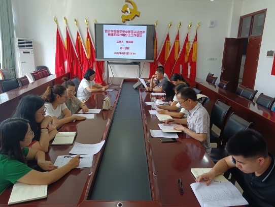 2022年7月5日上午10:00,数计学院钱淑渠副书记在数计学院会议室主持召开数计学院数学与应用数学专业师范认证自评自建阶段分组分工工作会议,领导小组叶玉莲、李小红、谌兰樱及各分组组长参加本次会议。