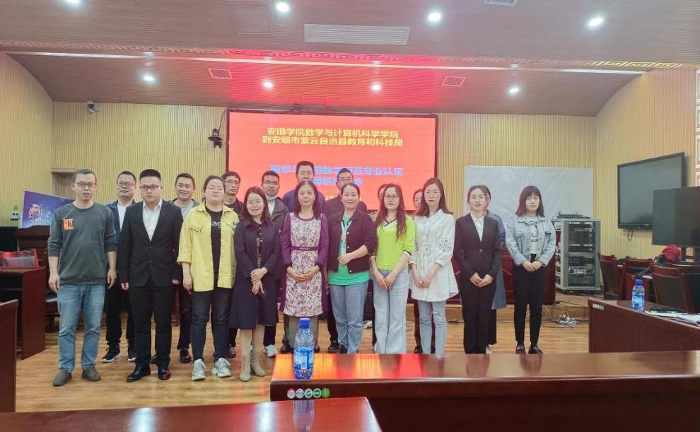 2021年5月26日下午,安顺学院数理学院副院长李小红一行七人赴安顺市紫云自治县教育和科技局开展数学与应用数学专业人才需求调研座谈。特邀紫云县教育局人事股负责人郭志华同志和办公室负责人韦江平同志及各中学的数学专业教师参加本次座谈会。